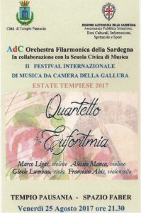 Stasera Venerdì 25 Agosto presso lo spazio Faber si esibirà alle 21.30 il Quartetto Euforitmia.