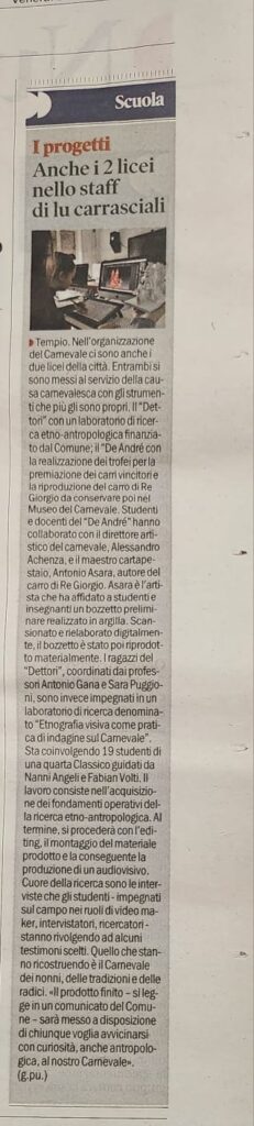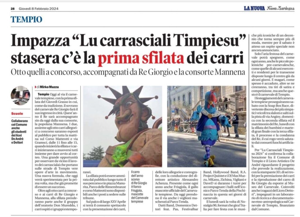 - Il Liceo De Andrè e il Liceo G.M. Dettori coinvolti da Lu Carrasciali Timpiesu