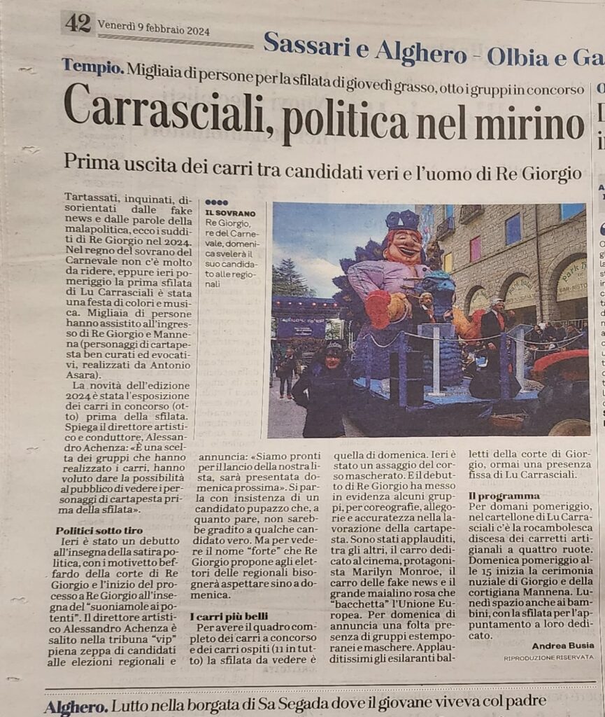 - Carnevale di Tempio 2024: il riassunto della sfilata di giovedì