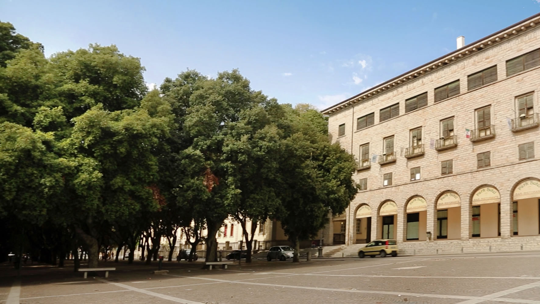 La Piazza XXV Aprile è arredata con un opera dello scultore sardo Pinuccio Sciola.