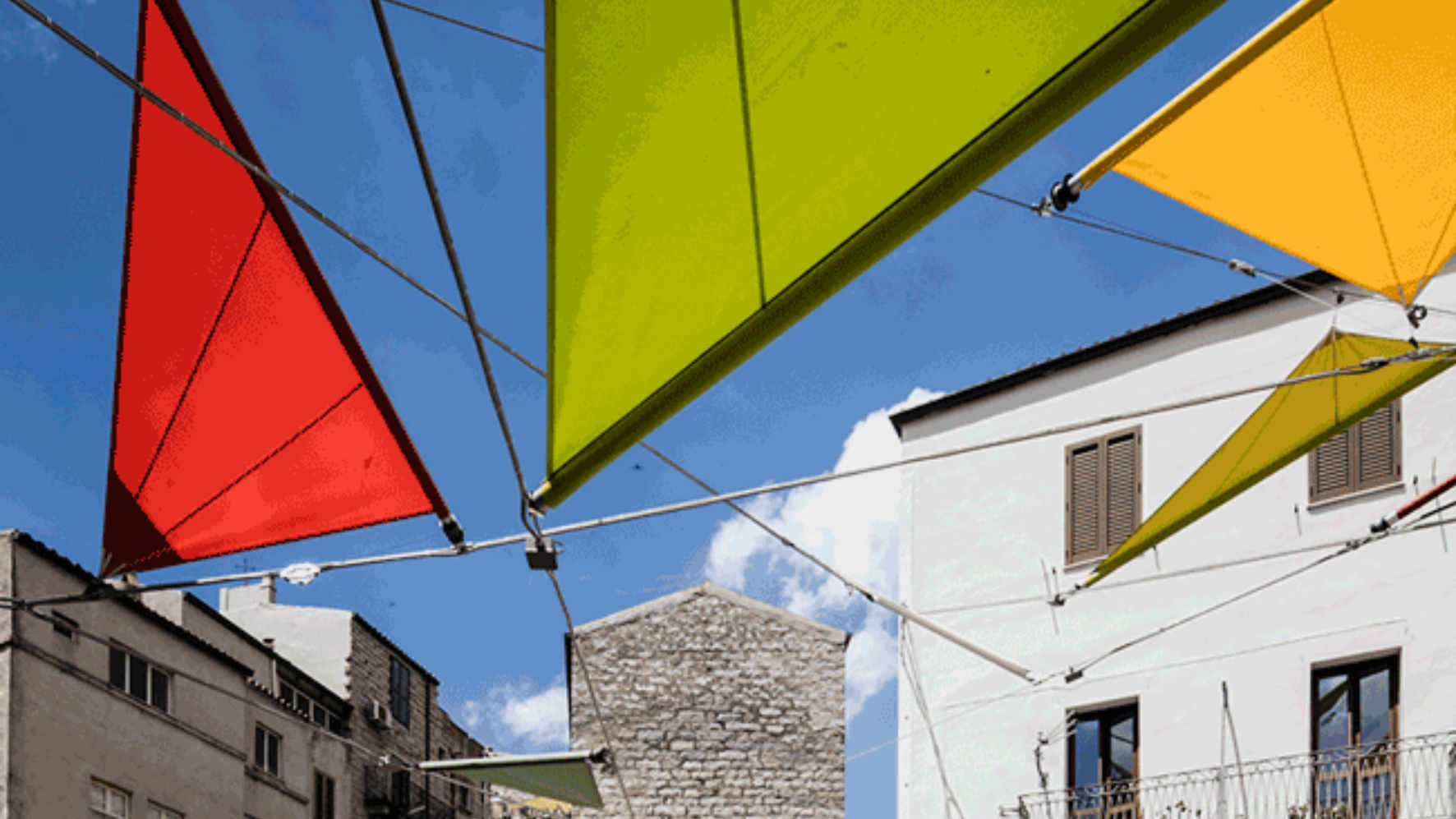 Circondata da palazzi settecenteschi, Piazza Faber si distingue dal resto del centro storico per l’installazione progettata dall’architetto Renzo Piano, amico intimo di Fabrizio De André. Insieme allo studio Alvisi Kirimoto, è stata realizzata una ragnatela colorata che cattura la luce del sole e restituisce luminosità al granito. Una maglia di funi d’acciaio forma 12 triangoli di tessuto di diverse dimensioni e colori. Questi triangoli si avvolgono attorno a rulli motorizzati con un meccanismo simile a quello della vela nautica. L’idea di Renzo Piano di realizzare una “ragnatela” che fermasse i colori della luce, si traduce così in un gioco leggero e mutevole fatto di funi, teli, colori che non toccano la piazza, ma la ombreggiano e colorano.