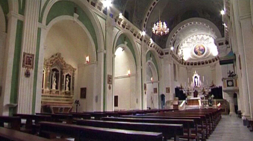 Best details are the beautiful wooden organ built by Paul Ciresa in 1980 and the marble baptismal font on the left side of the entrance. Behind the main altar stands the impressive choir carved in olive wood built during the bishopric of Monsignor Vincenzo Vico between 1737 and 1741 surmounted by the fresco circular apse of St. Peter the Apostle, who holds in his hands the keys of the kingdom of Heaven.