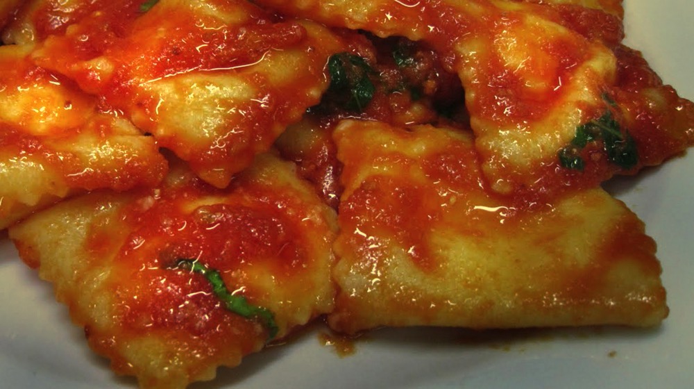 They vary from other types of ravioli as they have a sweet filling, made of sheep ricotta cheese, sugar and lemon zest; despite this, however, they are traditionally served with a savory sauce and covered with pecorino cheese.