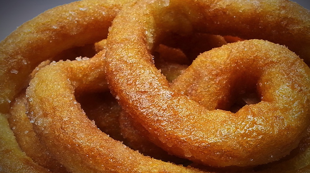We need a few simple ingredients to prepare them, the recipe is really easy to make; you must mix the wheat flour with hot water, add the yeast and milk and stir with your hands until the dough becomes smooth. When ready you have to cover it with a damp cloth and let it stand for about an hour, until it is leavened; Then put the dough into a pastry bag, poured the dough in hot lentisk oil in a spiral shape, they are cooked when become golden.