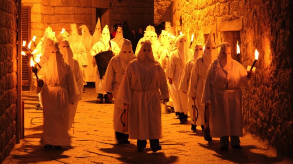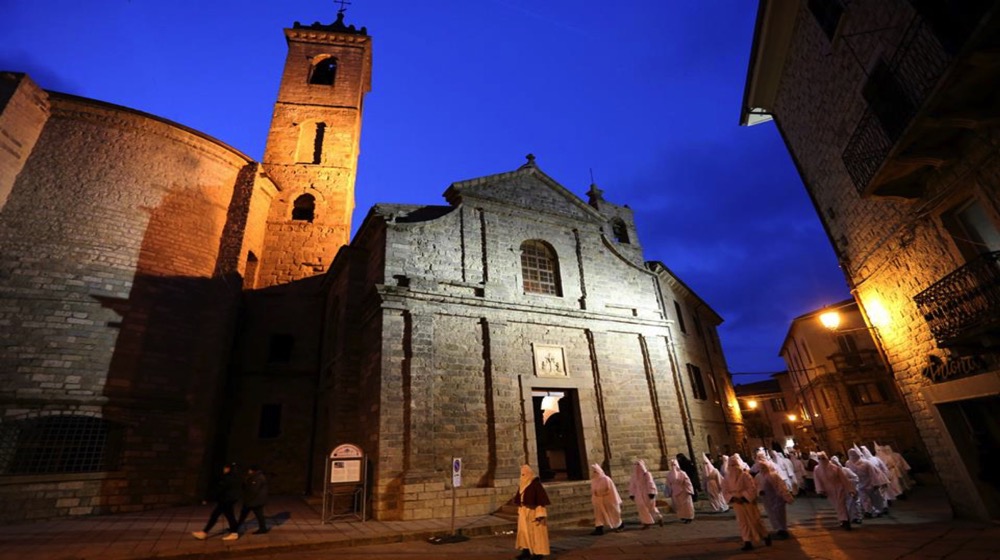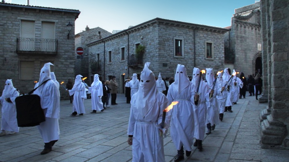 The most important day is the Holy Friday which is characterized by the Via Crucis and the ritual of “Sgraamentu.” The Via Crucis cross the historic center with the simulacra of the grieving Virgin and the Crucified Christ, accompanied by the brotherhoods and the hooded penitents in traditional white robe, accompanied by archaic and poignant melodies, followed by the ritual of “Sgraamentu” deposition of Christ from the cross and its burial.