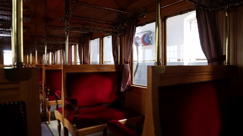 La cura dei dettagli è evidente nell’uso dei mattoni in contrasto con l’intonaco e le parti strutturali in granito, nei dipinti delle lunette e nelle fasce geometriche che sottolineano le pareti, nelle scritte di servizio e negli arredi, non integralmente conservati.
