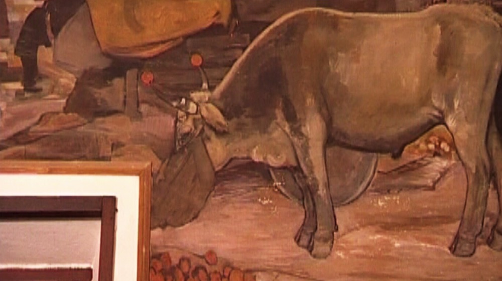 È particolarmente importante la parte decorativa di Giuseppe Biasi, che eseguì le pitture per l’interno. I dipinti, in parte perduti, rappresentano scene di vita campestre e a momenti di vita quotidiana, caratterizzate da ampie stesure di colore, sia cupo che vivace e brillante.